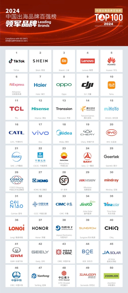 《百強(qiáng)榜》的參選標(biāo)準(zhǔn)包括3項(xiàng):由中國企業(yè)創(chuàng)立;在海外業(yè)務(wù)營收占比不低于30%或不小于30億元;品牌必須有一定的公眾基礎(chǔ)和知名度。